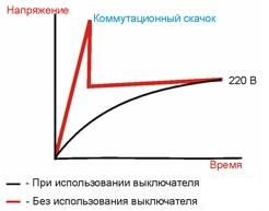 Помимо экономии электроэнергии, энергосберегающие выключатели значительно продлевают срок службы ламп накаливания. В большинстве случаев лампы накаливания перегорают во время их включения. Во время нажатия на выключатель происходит скачок напряжения в сети, который может в несколько раз превышать номинальное напряжение. В современных энергосберегающих выключателях включение освещения осуществляется через устройство плавного пуска, который исключает скачки напряжения. Тем самым исключается возможность выхода из строя ламп при их включении. Малое время использования лампы также продлит срок её эксплуатации, что позволит не осуществлять замену ламп по несколько лет, а короткое время работы лампы накаливания не позволяет плафону нагреться.
