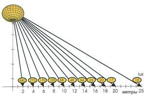 | Освещенность при использовании группы прожекторов |
