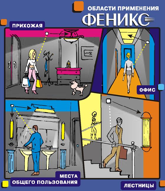 Инфракрасный датчик движения (биовыключатель)Датчики движения Совмещенные датчики движения и исполнительные блоки (моноблоки) Разделенные датчики движения и исполнительные блоки Силовые реле для ИК датчиков Инфракрасный датчик беспроводные ИКД-4ИК Инфракрасный датчик проводные Исполнительные блоки беспроводные Исполнительные блоки проводные Инфракрасный датчик движения (биовыключатель) - предназначен для автоматического включения осветительных приборов, вентиляторов, электронагревателей и т.п. на то время, пока в поле зрения инфракрасного датчика находится человек. УДОБНО - автоматическое управление освещением проходных помещений: прихожие, места общего пользования, лифтовых холлов, приквартирных коридоров, лестничных площадок, подвалов, бытовых приборов. ЭКОНОМИЧНО - экономия на выплате за электроэнергию и на замене перегоревших лампочек. ЭФФЕКТИВНО – особенно при подключении нескольких ламп к одному исполнительному блоку. Примеры использования ИК датчиков (автоматическое включение/выключение света) Освещение входных дверей Освещение лестниц Освещение лифтового холла Освещение приквартирного коридора ![]() ![]() |